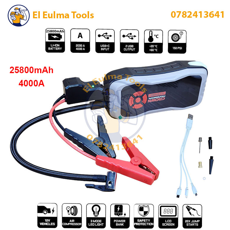 Le CROWN CT37042 TB est la solution tout-en-un pour gérer les pannes de batterie et maintenir la pression de vos pneus, avec une seule unité puissante et portable.