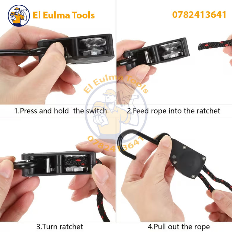 Verrouillage Automatique Sécurisé : Le mécanisme interne à cliquet bloque la corde instantanément à la position souhaitée. Une fois tendue, la charge ne bouge plus, garantissant une sécurité totale.