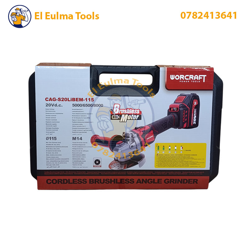 Meuleuse d’angle sans-fil 115mm 20V 2 Batteries WORCRAFT CAG-S20LiBEM-115